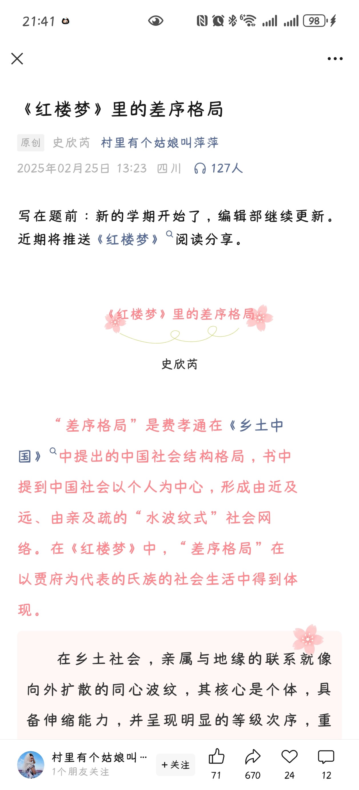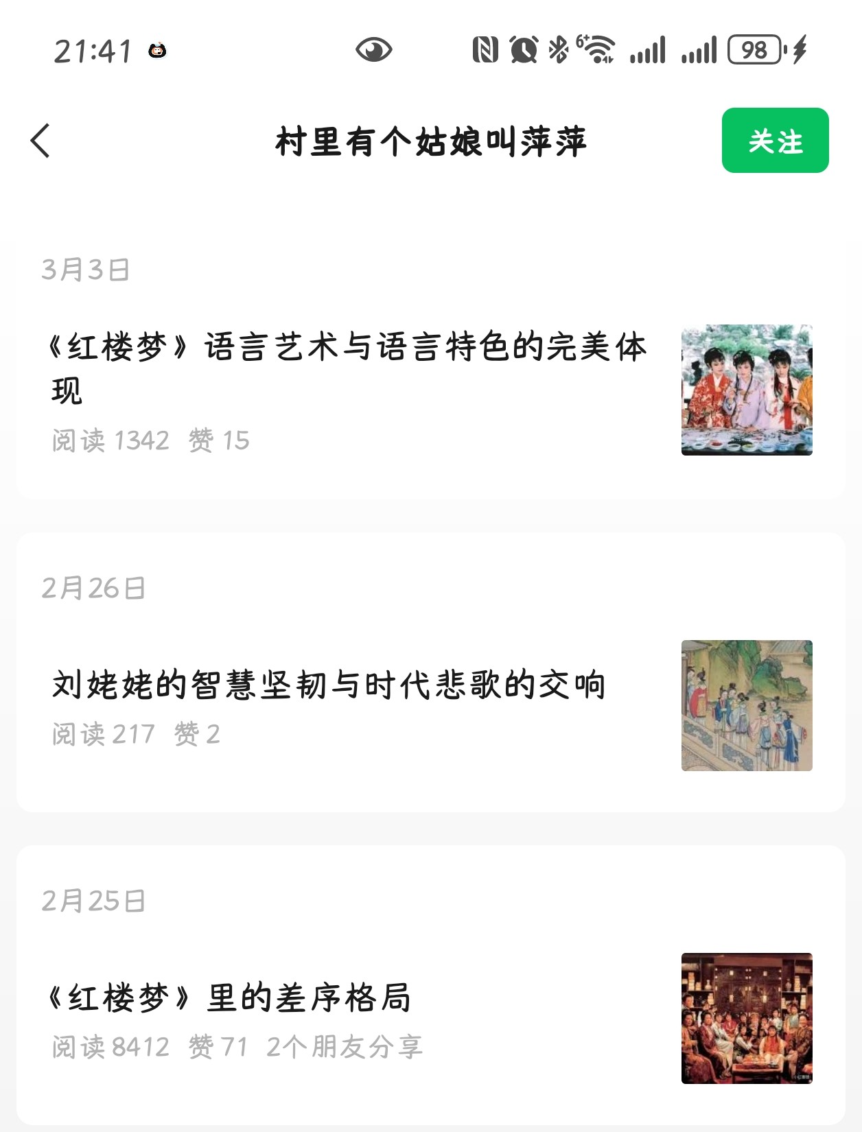 參賽指導(dǎo)老師林春萍回憶起史欣芮創(chuàng)作過(guò)程時(shí)仍難掩激動(dòng):“接到比賽通知次日,她就發(fā)來(lái)提綱,一周后交稿,不到兩小時(shí)一氣呵成,連標(biāo)點(diǎn)都極少改動(dòng)。”在林老師眼中,史欣芮的“天才”背后是日復(fù)一日的積淀:班級(jí)公眾號(hào)“村里有個(gè)姑娘叫萍萍”里,她的《〈紅樓夢(mèng)〉里的差序格局》曾獲得8000+閱讀量;班上每月會(huì)印制一本學(xué)生散文隨筆集,作為主編的史欣芮文學(xué)造詣早已初見(jiàn)端倪:她的文字總能以小見(jiàn)大,將日常觀察升華為對(duì)文化的思考。