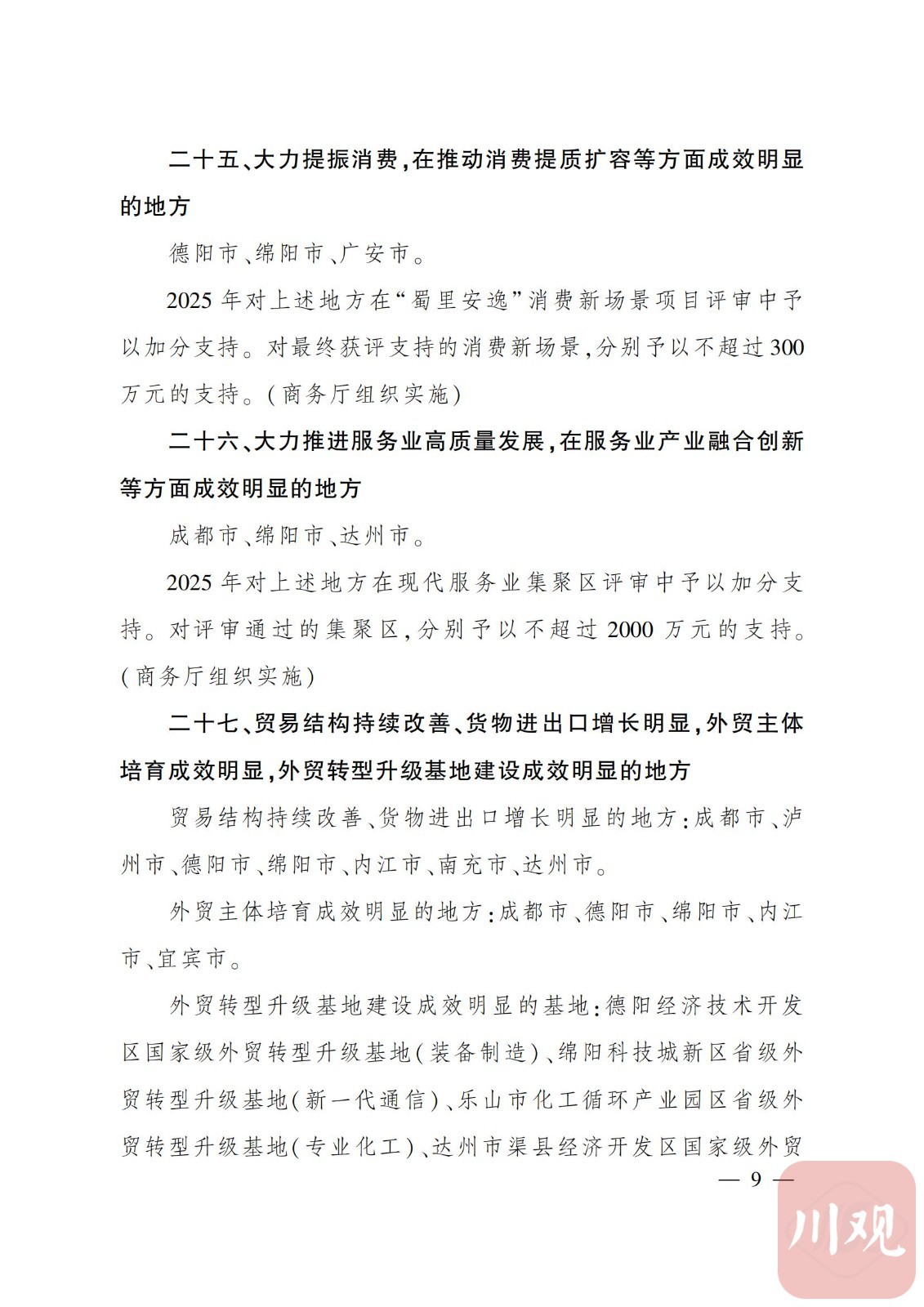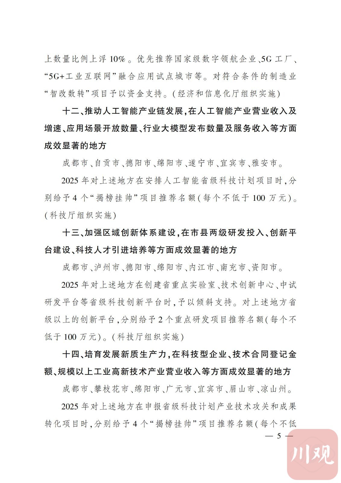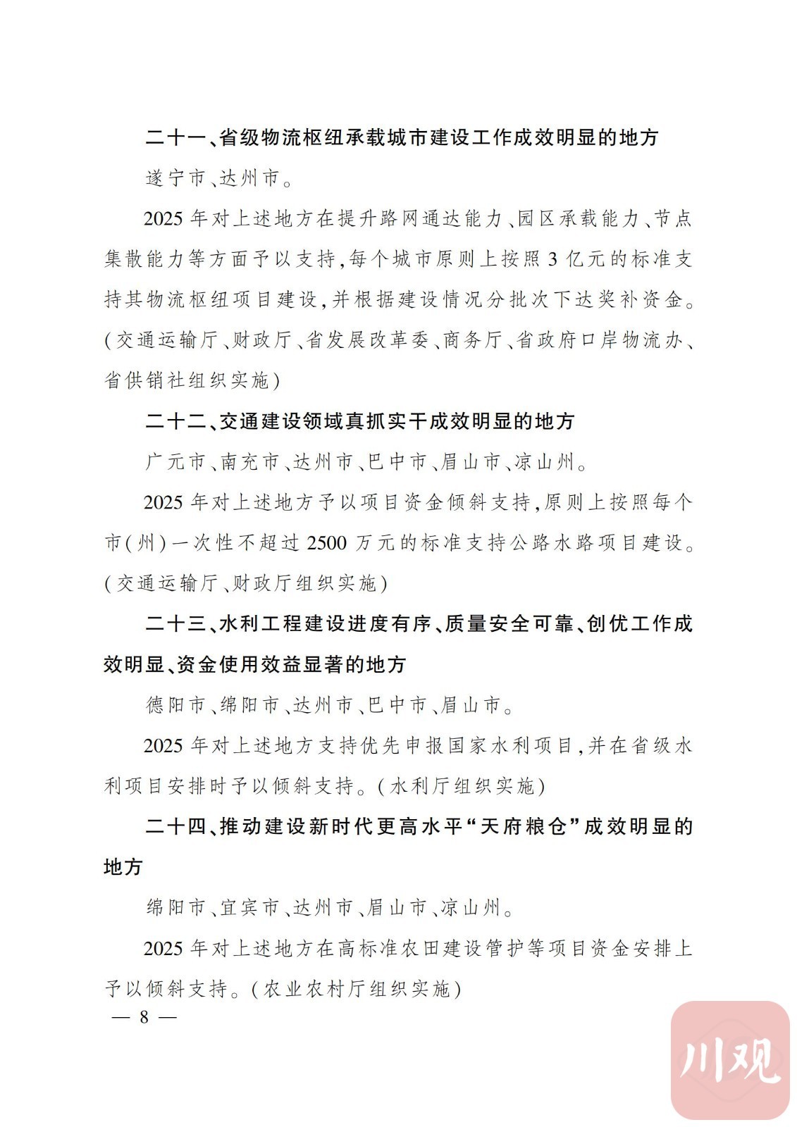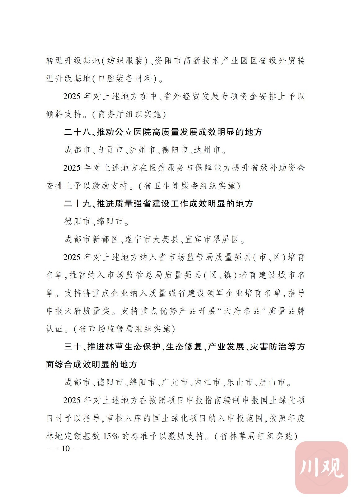 為深入貫徹落實(shí)習(xí)近平總書記來川視察重要指示精神,認(rèn)真落實(shí)省委、省政府決策部署,按照《政府督查工作條例》規(guī)定,經(jīng)省政府同意,決定對(duì)2024年度落實(shí)成渝地區(qū)雙城經(jīng)濟(jì)圈建設(shè)、數(shù)字政府建設(shè)、民營(yíng)經(jīng)濟(jì)發(fā)展、重點(diǎn)產(chǎn)業(yè)鏈發(fā)展等方面有關(guān)重大政策措施真抓實(shí)干、取得明顯成效的21個(gè)市(州)、55個(gè)縣(市、區(qū))予以督查激勵(lì)。