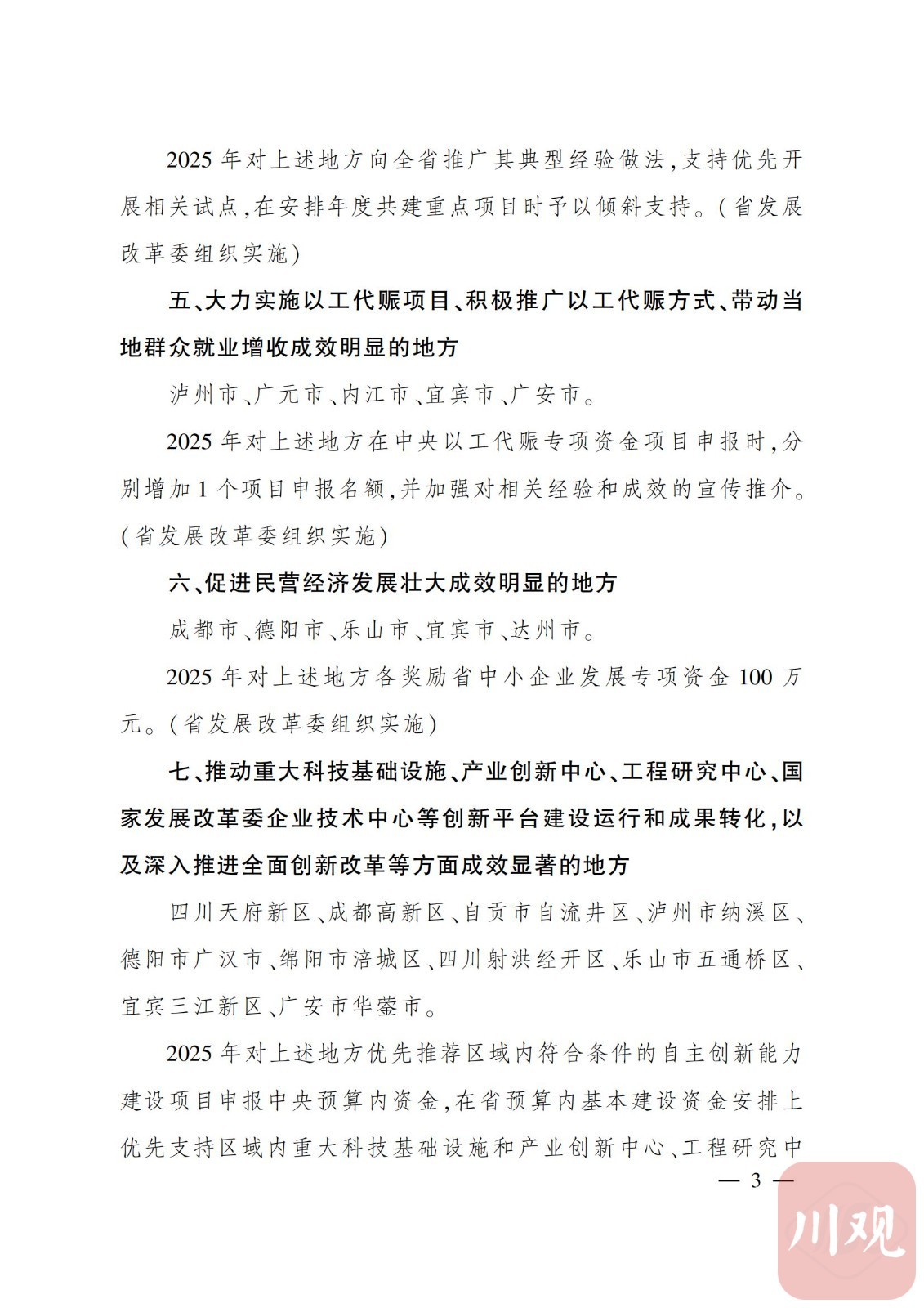 4月21日,四川省人民政府網(wǎng)站發(fā)布《四川省人民政府辦公廳關(guān)于對(duì)2024年度落實(shí)有關(guān)重大政策措施真抓實(shí)干成效明顯地方予以督查激勵(lì)的通報(bào)》,對(duì)2024年度落實(shí)有關(guān)重大政策措施真抓實(shí)干成效明顯的21個(gè)市(州)、55個(gè)縣(市、區(qū))予以督查激勵(lì)。具體內(nèi)容如下: