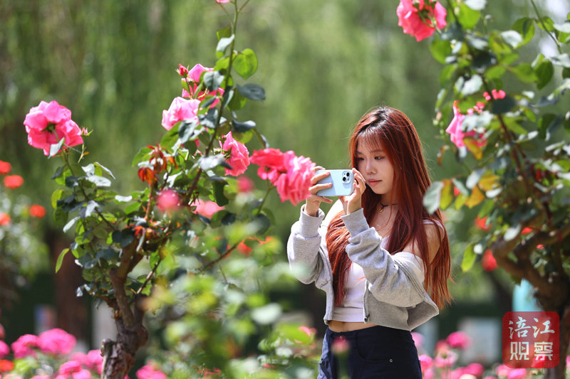 4月23日,三江湖國(guó)家濕地公園南河壩段的月季花迎來(lái)盛花期,爛漫的月季花爭(zhēng)相斗艷,吸引了不少市民打卡。