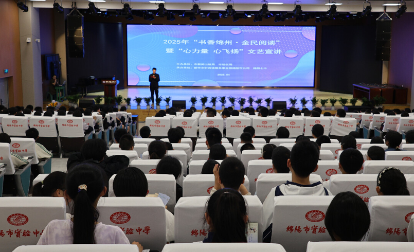 綿陽新聞網(wǎng)訊 4月22日下午,由綿陽市委宣傳部主辦、新華文軒綿陽分公司承辦的的2025年“書香綿州·全民閱讀”暨“心力量 心飛揚(yáng)”文藝宣講進(jìn)校園活動(dòng)在綿陽市實(shí)驗(yàn)中學(xué)(綿陽七中)隆重舉行。