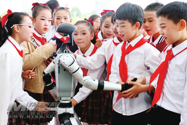 同學(xué)們爭相與機(jī)器人握手