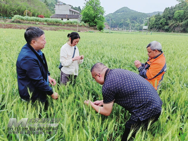 春播一粒種,秋收萬擔糧。在中新鎮(zhèn)來福村小麥種植基地,三臺縣農業(yè)農村局農技推廣中心高級農藝師羊夢正帶著技術人員對川麥93進行理論測產。
