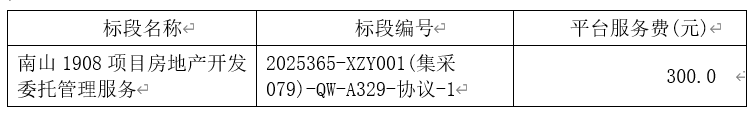 本采購項目南山1908項目房地產(chǎn)開發(fā)委托管理服務(項目編號:2025365-XZY001(集采079)-QW-A329-協(xié)議),采購人為綿陽鑫永置業(yè)有限公司,資金來源于我方資金 。項目已具備招標條件,現(xiàn)對該項目進行公開招標。