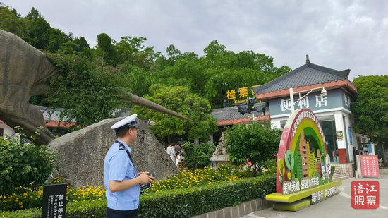 5月3日,在尋龍山景區(qū)上空傳來清亮的提示音:“前方路口車流密集,請游客有序通行。”一架配備高清攝像頭和擴音設(shè)備的警用無人機,正在執(zhí)行空中巡航任務。