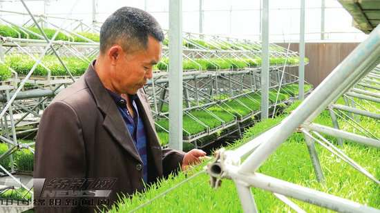 在合作社的育苗中心內(nèi),一個個已經(jīng)進入育秧環(huán)節(jié)的秧盤在機器操控下勻速旋轉(zhuǎn)接受光照和噴灌,嫩綠的秧苗已經(jīng)有一指長。這種“工廠化”的育秧方式,大大提高了育秧效率。負責人楊興富表示,合作社今年育秧采取兩種方式,工廠化育秧和露天育秧。工廠化育秧時前期溫度低,可以保溫、保濕,后期露天育秧,包括是要接茬油菜地,要晚一點,外面溫度已經(jīng)夠了,效果要好一些。