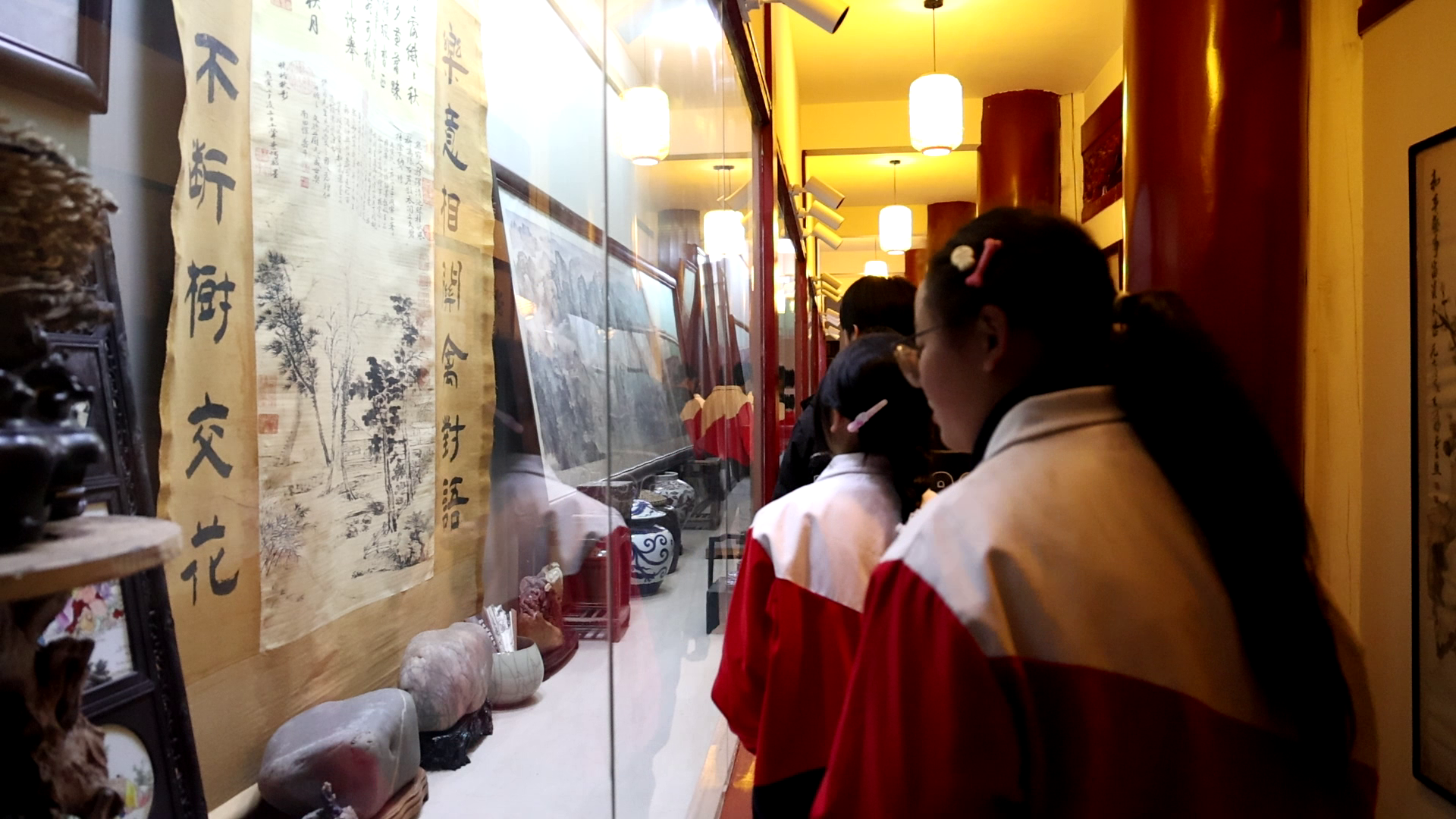“步行3、5分鐘,孩子們就能在鄉(xiāng)村里探索古今文明。”這是大英縣天保中學教師鄧仁義帶領學生此行的原因。這座由原寶豐寺改造而成的金石書畫博物館,是天保鎮(zhèn)繼農耕博物館、民俗博物館建成后的“第三館”。其建筑外觀上保留了傳統(tǒng)榫卯建筑工藝,館內陳列著名人字畫、近現(xiàn)代創(chuàng)新畫作以及金石篆刻、扇面小品等各類藏品600余件,其中1組由108幅龍字組成的特色藏品更是曾漂洋過海赴洛杉磯展出。