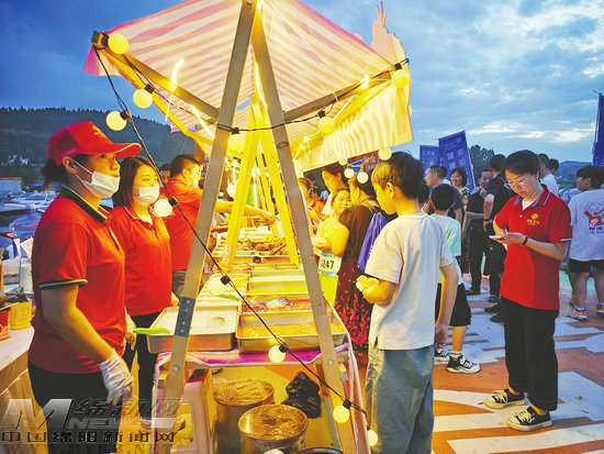與樂跑賽事同步進行的,是章邦小草原上熱鬧非凡的鄉(xiāng)村市集。20余個展位整齊排列,桑葉茶、嫘祖豆瓣等當?shù)靥禺a(chǎn)琳瑯滿目,現(xiàn)蒸的“梓江鱖魚”香氣四溢,吸引眾多游客駐足品嘗。舞臺中央,獨唱、歌舞等精彩表演輪番上演,觀眾們席地而坐,一邊欣賞演出,一邊感受鄉(xiāng)村晚風的輕撫,享受著難得的悠閑時光。高渠鎮(zhèn)黨委副書記、鎮(zhèn)長魏川介紹:“樂跑不僅是一項健身活動,更是一個窗口,讓大家有機會深入感受鄉(xiāng)村的生態(tài)之美。未來,我們將常態(tài)化開展鄉(xiāng)村文化市集和各類文旅活動,讓游客來了就不想走,走了還想再來。”