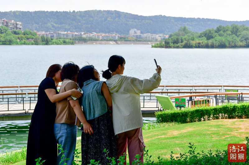 不遠處,蒼勁挺拔、形如龍爪的羅漢松與江對岸山巔上的南塔遙相呼應(yīng),為這座風景秀麗的城中濕地公園平添了幾分古樸與雅致。市民沉浸在這片寧靜自然,清新舒適的環(huán)境中,或休閑娛樂,或讀書健身,盡情享受著愜意的美好時光。