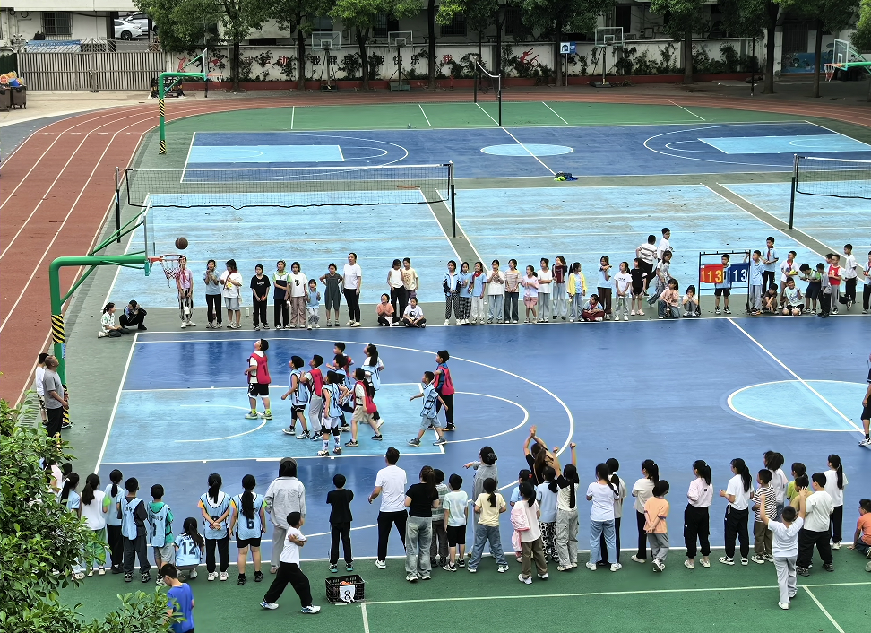 三年級和四年級的籃球小將們步伐輕盈而矯健,眼神中透著堅定與自信?;@球在他們的指尖靈活跳動,仿佛被賦予了生命。有的球員憑借敏捷的身手,如閃電般突破對手的防線;有的高高躍起,在空中劃出一道優(yōu)美的弧線后,籃球精準入網(wǎng),引得現(xiàn)場觀眾歡呼連連。