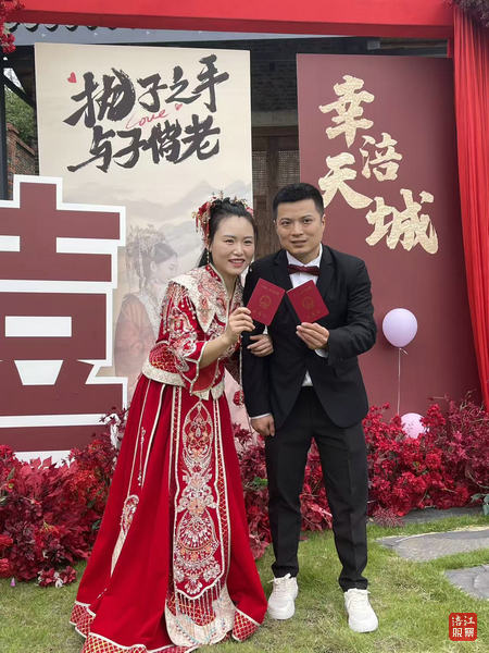 “十年的相識(shí)相戀,終于在今天修成正果。幸福不在排場(chǎng)大小,而在彼此鼓勵(lì),相互進(jìn)步,共同扶持的初心。我會(huì)用每一天的陪伴,讓‘執(zhí)子之手’的承諾化作煙火人間的溫暖。”新人代表任先生及妻子小雪的表白深情款款。新人的故事引發(fā)共鳴,現(xiàn)場(chǎng)掌聲與祝福聲此起彼伏,讓傳統(tǒng)禮儀與現(xiàn)代愛情觀在交融中綻放光彩。