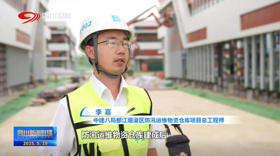 中建八局都江堰灌區(qū)防汛運維物資倉庫項目總工程師 李嘉:正在進行外立面幕墻安裝和裝飾裝修施工,防汛運維物資倉庫建成后,將采用先進的自動化存儲技術(shù),確保汛期物資集中存儲、調(diào)配和運輸。