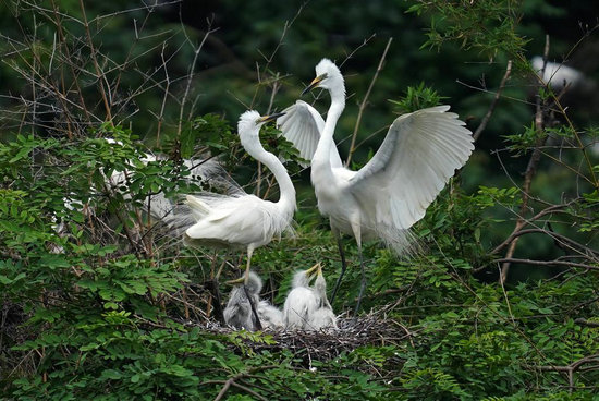為了更好地保護(hù)野生鳥類的生存環(huán)境,園區(qū)專門規(guī)劃了夏候鳥保護(hù)區(qū),幾乎每年都會(huì)移植新樹木,讓鳥兒更好地筑巢繁殖。目前,天香園正計(jì)劃進(jìn)一步擴(kuò)大園區(qū)水域面積,為鳥群提供更廣闊的棲息場所。