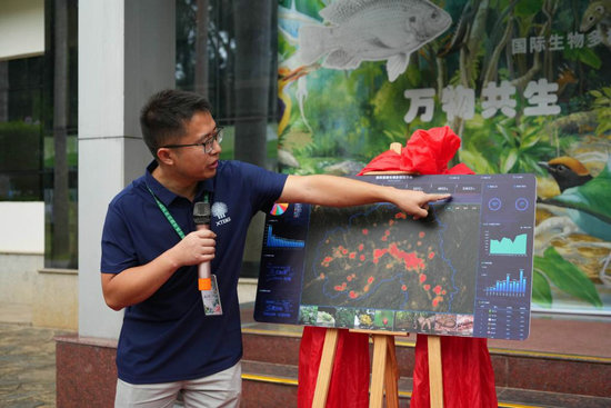 5月22日,中國(guó)科學(xué)院西雙版納熱帶植物園“西雙版納生物多樣性平臺(tái)”上線,中國(guó)科學(xué)院西雙版納熱帶植物園高級(jí)工程師朱仁斌在介紹平臺(tái)界面。(胡攀攝)