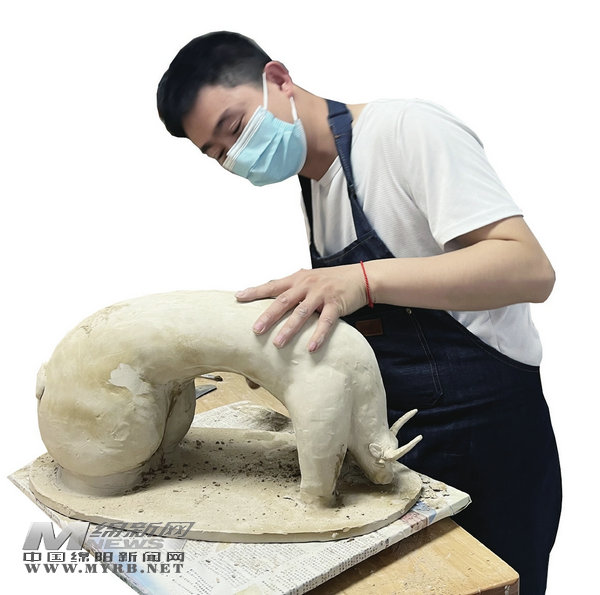“看,這就是我們今年在全國第八屆中小學生藝術節(jié)上獲得手工藝制作二等獎的作品《童年》。”順著陶藝工作坊教師賈冬梅指引的方向,可見一頭拱形牛背上馱著4個小朋友,有的眺望遠方,有的正在看書。“我們的學生雖有聽說障礙,但都很耐心、細致、專注,所以這次計劃展示《童年》《手語娃娃》《綿陽說唱俑》三個系列的陶藝作品,體現(xiàn)特教學生自立自強的形象。”賈冬梅說。