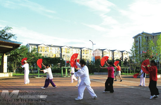 群眾在北川文化廣場晨練