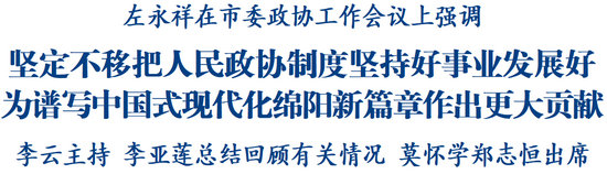 左永祥在講話中代表中共綿陽市委,向綿陽市政協(xié)成立40周年表示祝賀,向為我市政協(xié)工作作出貢獻的老領導、老同志,向全市政協(xié)各級組織、政協(xié)各參加單位和廣大政協(xié)委員、政協(xié)機關干部致以誠摯問候和衷心感謝。他指出,黨的十八大以來,以習近平同志為核心的黨中央高度重視人民政協(xié)事業(yè)發(fā)展,作出一系列重大決策部署,推動人民政協(xié)工作展現(xiàn)新氣象、新面貌。習近平總書記多次就人民政協(xié)工作發(fā)表重要講話、作出重要指示,深刻闡述事關人民政協(xié)事業(yè)長遠發(fā)展的一系列方向性、全局性、戰(zhàn)略性重大問題,形成了習近平總書記關于加強和改進人民政協(xié)工作的重要思想。特別是習近平總書記在慶祝中國人民政治協(xié)商會議成立75周年大會上的重要講話,深刻闡述人民政協(xié)的鮮明中國特色和顯著政治優(yōu)勢,對做好當前和今后一個時期人民政協(xié)工作作出全面部署,為人民政協(xié)事業(yè)高質(zhì)量發(fā)展指明了前進方向。省委政協(xié)工作會議暨慶祝四川省政協(xié)成立70周年大會,總結了省委領導四川政協(xié)工作積累的制度成果和寶貴經(jīng)驗,部署了今后一個時期政協(xié)工作的重點任務。我們要切實把思想和行動統(tǒng)一到習近平總書記關于加強和改進人民政協(xié)工作的重要思想上來,對標黨中央和省委部署要求,以高度的政治自覺不折不扣抓好落實,確保綿陽政協(xié)事業(yè)始終沿著正確方向前行。
