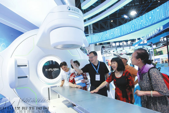 綿陽(yáng)館展出的長(zhǎng)虹FLASH核醫(yī)療設(shè)備備受關(guān)注