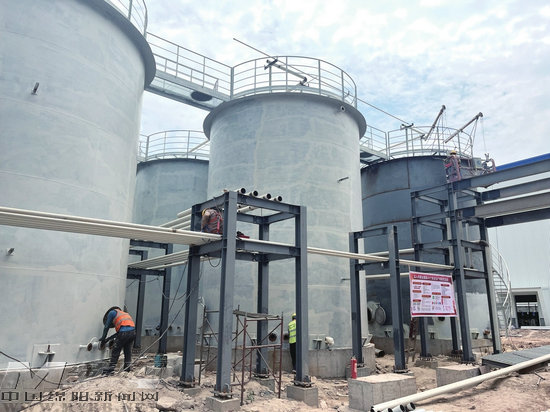 綠色食品產(chǎn)業(yè)園內(nèi),工人們忙著安裝生產(chǎn)設(shè)備。