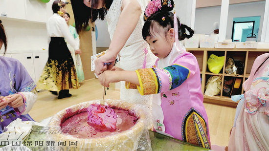 在這里,孩子們和老師換上古裝,老師當(dāng)起游園會(huì)NPC,指引孩子們完成一個(gè)又一個(gè)“游戲任務(wù)”。射“五毒”、投壺、五彩繩編織、制作漆扇等傳統(tǒng)活動(dòng)紛紛登場(chǎng)。孩子與家長(zhǎng)共同協(xié)作,在園區(qū)快樂“闖關(guān)”,在漆扇制作區(qū)創(chuàng)意作品……傳統(tǒng)與童趣的碰撞,讓孩子們暢享節(jié)日帶來的快樂。