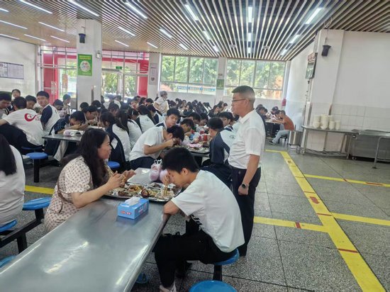 綿陽新聞網(wǎng)訊 為了鼓舞高三學(xué)子斗志,營造溫馨奮進(jìn)的備考氛圍,5月25日,江油一中在食堂舉行了以“助力高考 暖心贈(zèng)餐”為主題的高考沖刺贈(zèng)餐活動(dòng),該校全體包班領(lǐng)導(dǎo)及全體高三師生共同參與,以暖心餐食和誠摯祝福為即將奔赴考場(chǎng)的學(xué)子們加油助力。