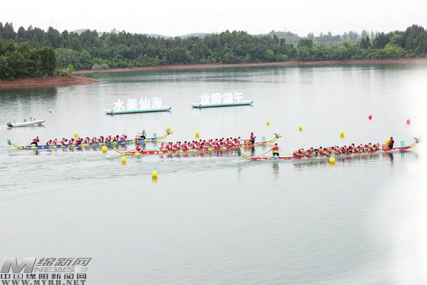 來自川渝兩地的龍舟隊(duì)伍在仙海湖面展開競速