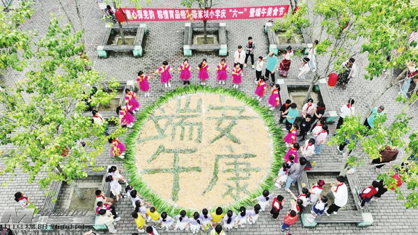 陳家壩小學(xué)師生用玉米和艾草拼出“端午安康”字樣