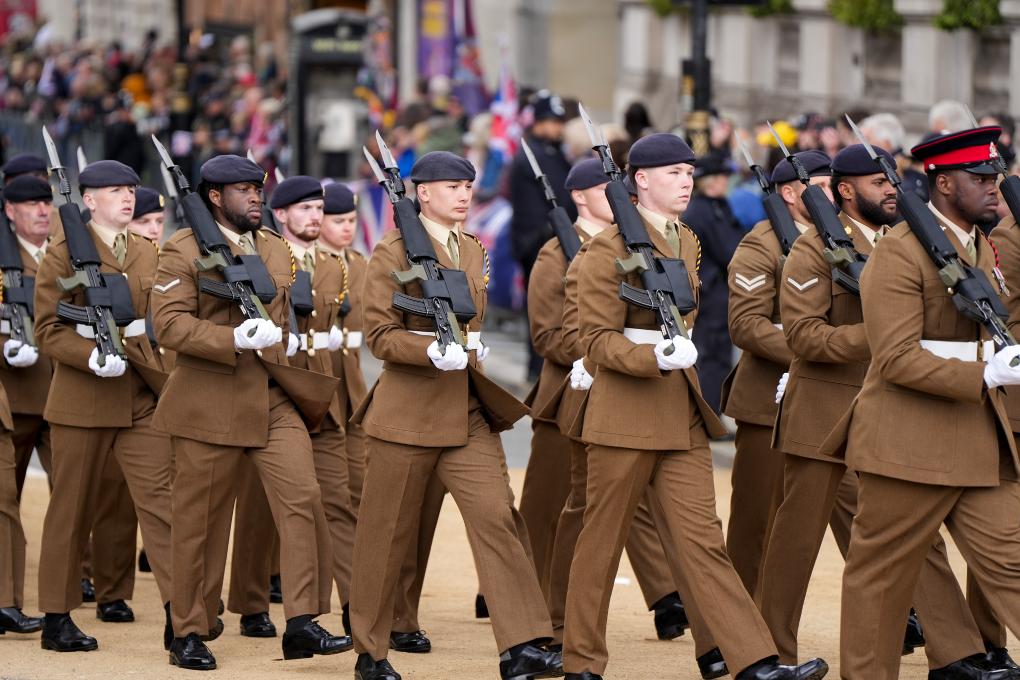 5月5日,在英國(guó)倫敦,軍人參加閱兵儀式。當(dāng)日,英國(guó)舉行活動(dòng)紀(jì)念第二次世界大戰(zhàn)歐洲戰(zhàn)場(chǎng)勝利80周年。新華社記者吳魯攝