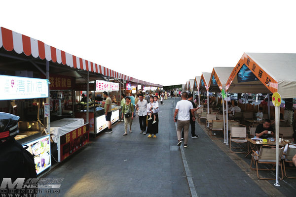 管理規(guī)范、風(fēng)格統(tǒng)一的孔雀夜市。