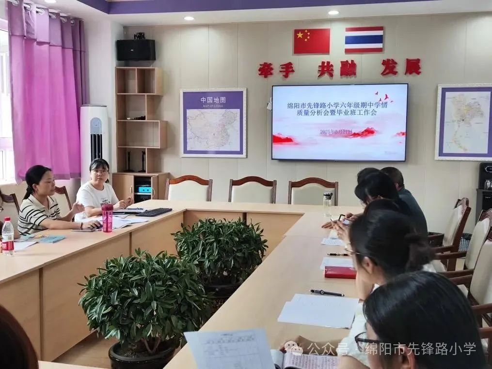 為了全面提升畢業(yè)班教育教學(xué)質(zhì)量,科學(xué)規(guī)劃下一階段復(fù)習(xí)工作,近日,綿陽(yáng)市先鋒路小學(xué)召開了以“凝心聚力共譜華章 精準(zhǔn)施策再創(chuàng)佳績(jī)”為主題的2025年春六年級(jí)過(guò)程質(zhì)量分析暨畢業(yè)班工作推進(jìn)會(huì)。會(huì)議通過(guò)數(shù)據(jù)診斷、策略研討、工作部署三個(gè)環(huán)節(jié),為畢業(yè)班教育教學(xué)工作把脈定向。