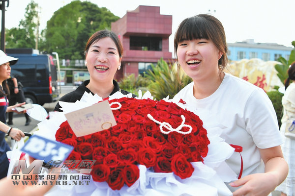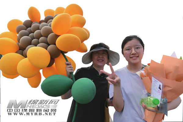 一名家長將花費(fèi)4個(gè)小時(shí)手工制作的氣球向日葵送給剛剛結(jié)束高考的女兒,一起慶祝難忘的時(shí)刻。