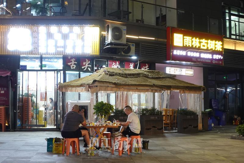 晚上十點(diǎn),三元匯的餐飲街依然燈火通明。