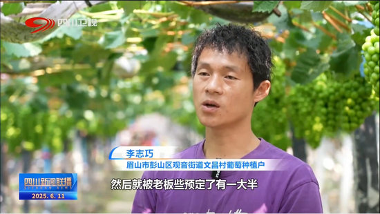 眉山市彭山區(qū)觀音街道文昌村葡萄種植戶 李志巧:現(xiàn)在剛好開始賣,然后就被老板些預(yù)定了有一大半,然后今年的價格,賣得還比去年的好。