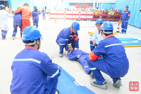 演練模擬了近年來(lái)建筑工地高發(fā)易發(fā)的施工安全事故場(chǎng)景。面對(duì)突發(fā)“險(xiǎn)情”,項(xiàng)目應(yīng)急預(yù)案迅速啟動(dòng),聯(lián)合相關(guān)部門立即開展高效救援。演練涵蓋事故預(yù)警、應(yīng)急響應(yīng)、現(xiàn)場(chǎng)指揮、安全警戒、搶險(xiǎn)救援、醫(yī)療救護(hù)等多個(gè)關(guān)鍵科目,過(guò)程緊張有序,有效檢驗(yàn)了在建工地應(yīng)急處置能力。