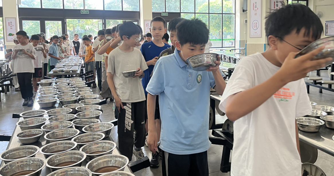 家長們紛紛稱贊:“學(xué)??紤]真周到,孩子回來都說綠豆湯好喝,我們更放心。”