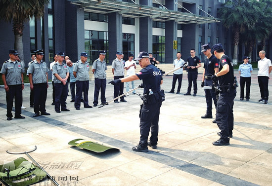 演練結束后,開展了安防技能現(xiàn)場培訓,民警結合案例開展反詐宣傳講座,演示防暴器械使用,通過互動問答、推廣國家反詐中心APP等方式,切實增強企業(yè)人員反詐意識。
