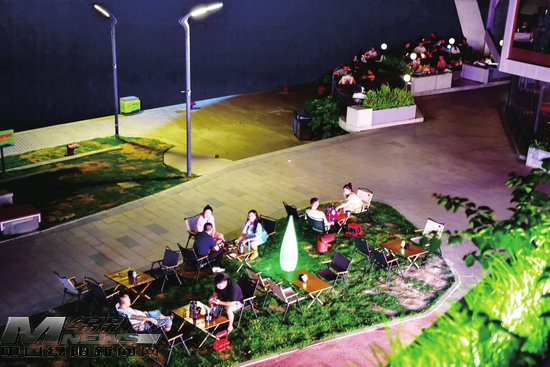 健康步道上,夜騎、夜跑愛好者躍動的身影在五彩斑斕的光影里留下一串剪影。江邊的小酒館透出柔和的光線,人們圍坐一桌,歡聲笑語,享受著這份寧靜與舒適。濱江廣場上,人們在涼爽的江風中欣賞著湖面倒影的迷人景色,感受城市脈動與自然生態(tài)融合之美。