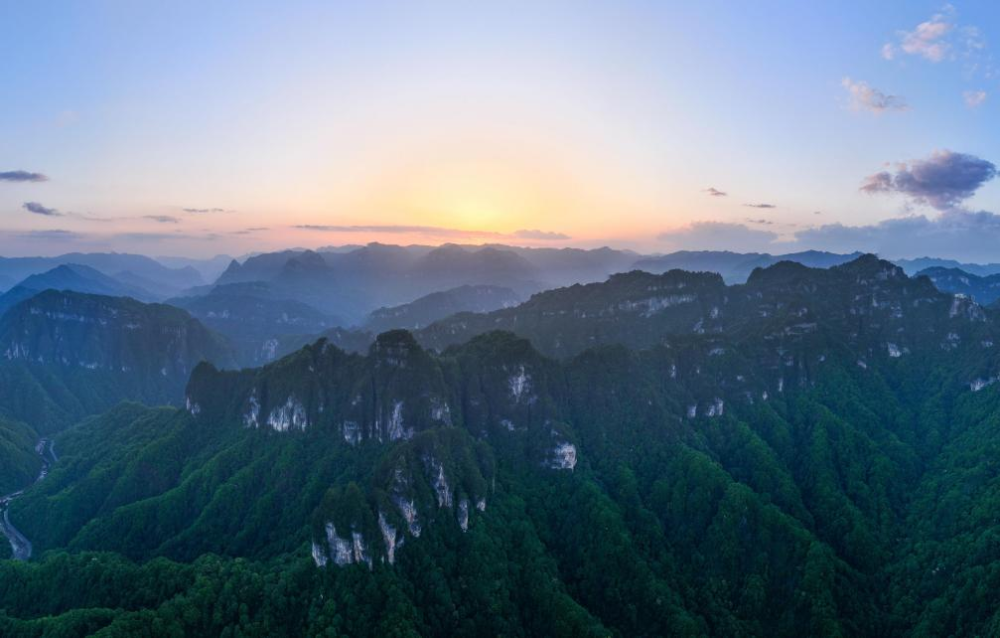 俯瞰光霧山景區(qū)燕子嶺,群峰疊嶂。新華社發(fā)(付海旭攝)