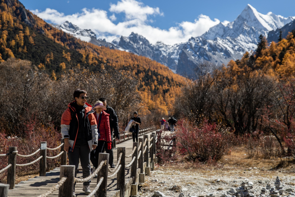 游客在四川省甘孜藏族自治州稻城亞丁景區(qū)游覽。新華社記者儲加音攝
