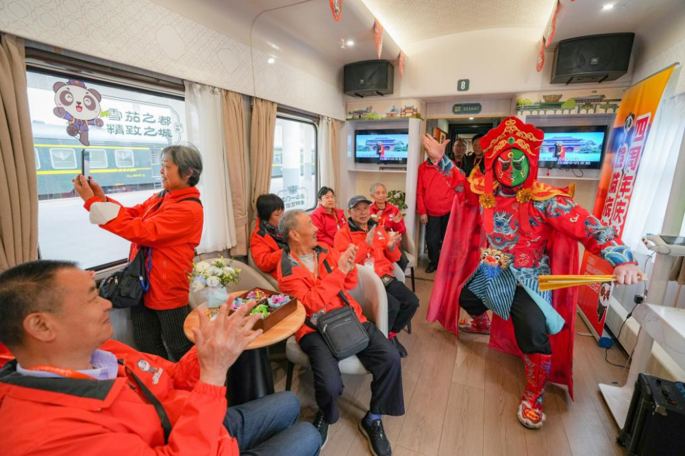 莫道桑榆晚,為霞尚滿天。在四川,不僅年輕人可以盡情游玩,追求慢生活的銀發(fā)族也能找到心儀的旅行方式。中國鐵路成都局集團(tuán)創(chuàng)新推出的“熊貓專列”,集安全、舒適、文化于一體:專業(yè)旅行管家陪同,隨車醫(yī)療團(tuán)隊保駕護(hù)航;沿途融入川劇變臉、茶藝表演等巴蜀特色文化活動,讓銀發(fā)游客在悠閑旅程中,享受“快旅慢游”。