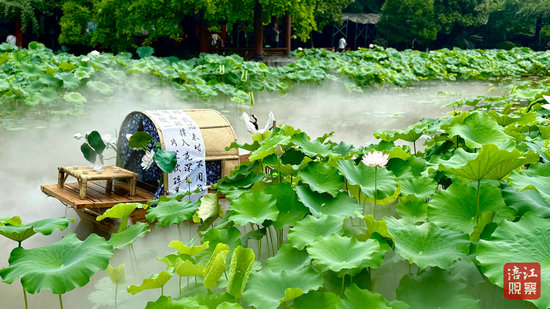 富樂山景區(qū)特別打造的7組主題景觀——“山荷畫卷”“風(fēng)荷舉”“隰有荷華”等,通過霧森系統(tǒng)營造出“蓮葉接天浮翠”的詩意場景,串聯(lián)起九曲步道的賞荷動線。