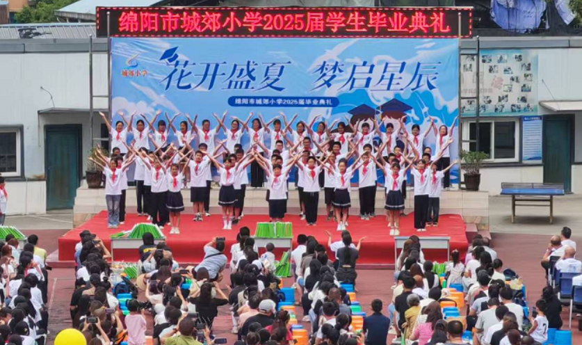 綿陽新聞網(wǎng)訊 6月20日下午,隨著涪城區(qū)小學(xué)畢業(yè)年級(jí)終結(jié)性監(jiān)測(cè)的結(jié)束,綿陽市城郊小學(xué)舉行了以“花開盛夏,夢(mèng)起星辰”為主題的2025屆學(xué)生畢業(yè)典禮,為2025屆學(xué)子的童年畫上圓滿句點(diǎn)。該校全體行政、畢業(yè)班師生及家長(zhǎng)齊聚一堂,共同見證了這一溫情而莊重的時(shí)刻。