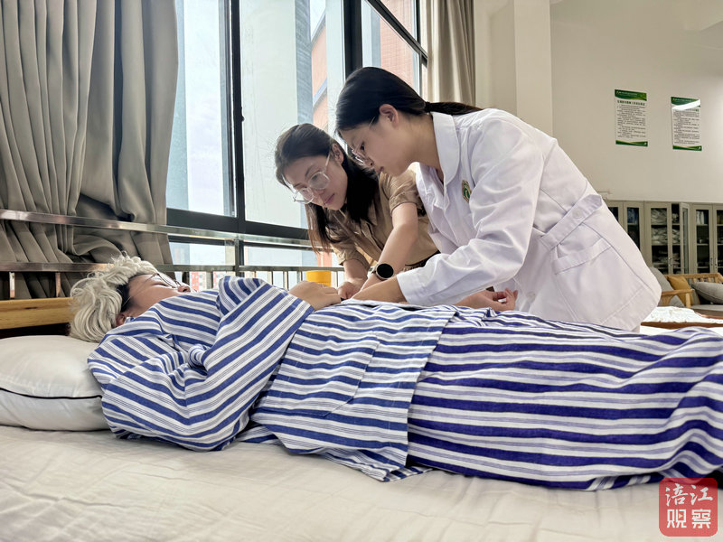 “奶奶,測(cè)量血壓的時(shí)候,會(huì)有一點(diǎn)緊,不要擔(dān)心,這是正常的,要注意保持不動(dòng)哦,這樣測(cè)量數(shù)據(jù)才準(zhǔn)確。”在四川幼兒師范高等??茖W(xué)校老年服務(wù)實(shí)訓(xùn)中心,智慧健康養(yǎng)老服務(wù)與管理專業(yè)學(xué)生正在專業(yè)老師的指導(dǎo)下練習(xí)護(hù)理技能。