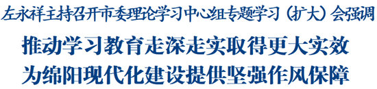 綿陽新聞網(wǎng)訊 6月24日,市委理論學(xué)習(xí)中心組舉行專題學(xué)習(xí)(擴(kuò)大)會(huì),集中學(xué)習(xí)習(xí)近平總書記關(guān)于加強(qiáng)黨的作風(fēng)建設(shè)的重要論述和重要指示批示精神,學(xué)習(xí)黨的十八大以來深入貫徹中央八項(xiàng)規(guī)定精神的成效和經(jīng)驗(yàn),學(xué)習(xí)有關(guān)法規(guī)文件。省委常委、副省長、市委書記左永祥主持會(huì)議并講話。他強(qiáng)調(diào),要深學(xué)細(xì)悟習(xí)近平總書記重要論述的核心要義,準(zhǔn)確把握黨中央推進(jìn)作風(fēng)建設(shè)的深邃考量,深入落實(shí)中央八項(xiàng)規(guī)定及其實(shí)施細(xì)則精神,進(jìn)一步深化認(rèn)識(shí),統(tǒng)一思想行動(dòng),推動(dòng)學(xué)習(xí)教育走深走實(shí)、取得更大實(shí)效,為綿陽現(xiàn)代化建設(shè)提供堅(jiān)強(qiáng)作風(fēng)保障。