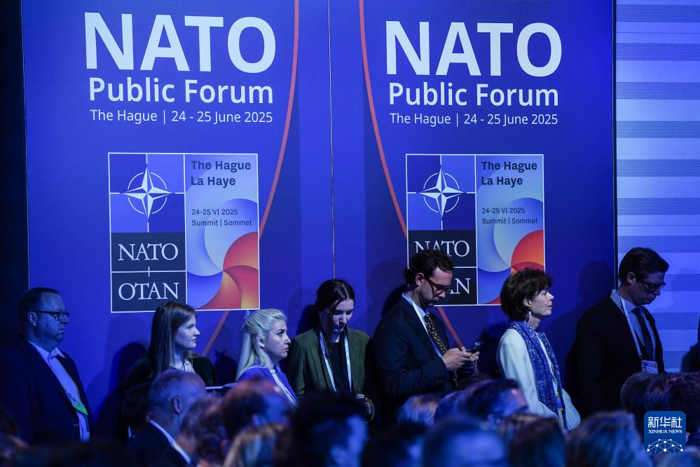 這是6月24日在荷蘭海牙拍攝的北約峰會(huì)首日舉辦的公共論壇。新華社記者 彭子洋 攝
