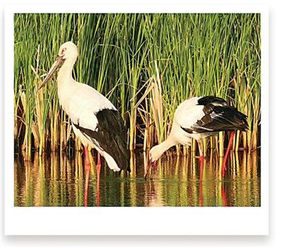 山東東營(yíng)黃河口候鳥(niǎo)棲息地,東方白鸛在離巢穴不遠(yuǎn)的濕地里覓食。楊 斌攝