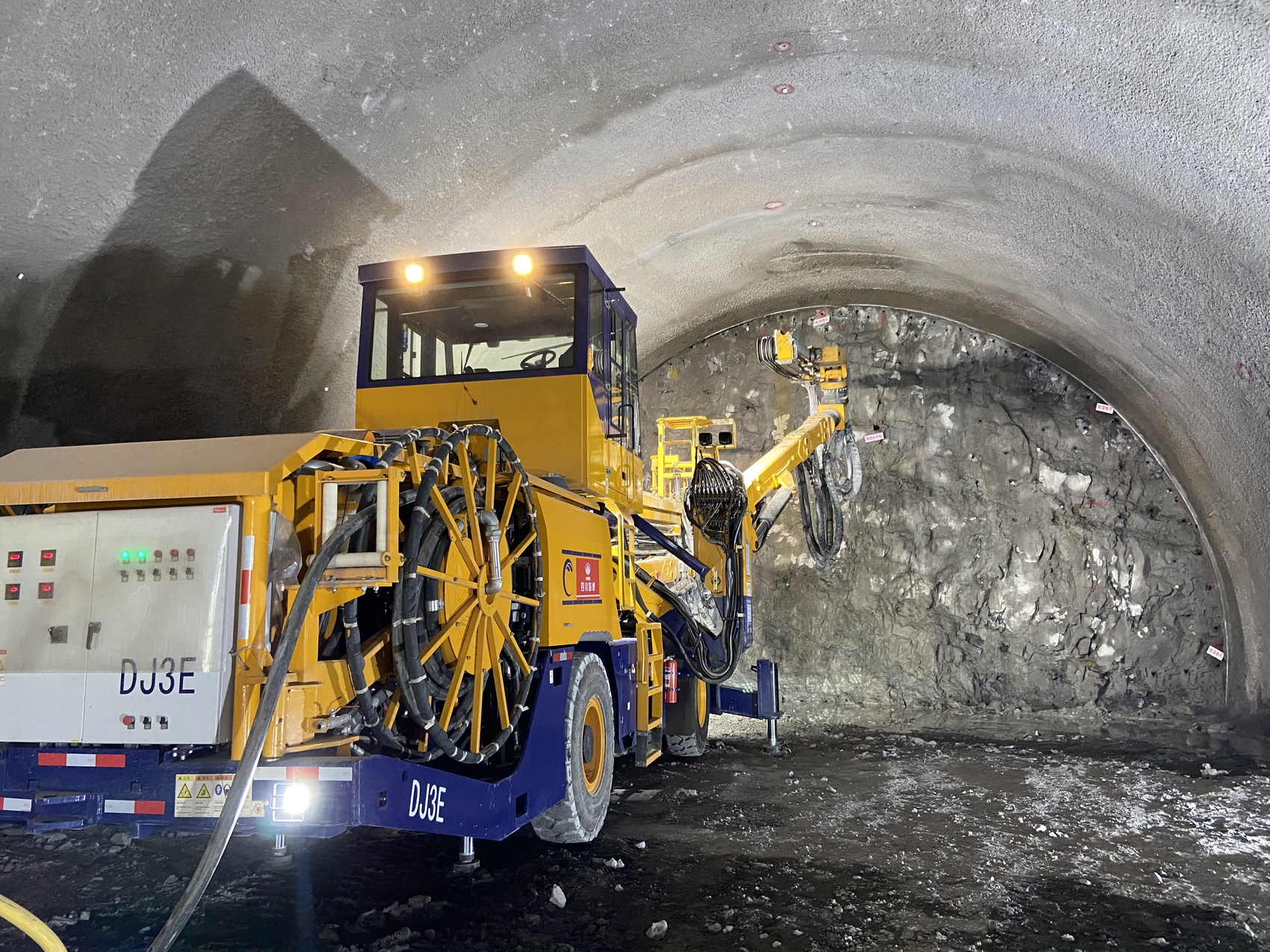 為保障施工安全和工程建設有序推進,針對隧道復雜地質(zhì)特點,建設團隊在施工過程中引入三臂鑿巖臺車等先進設備,實現(xiàn)了機械化換人、自動化減人,大幅度降低勞動強度和安全風險;自主研發(fā)“三噴三刮一收面”——噴射混凝土“七步法”施工,有效提升了初支平整度,確保了施工質(zhì)量。