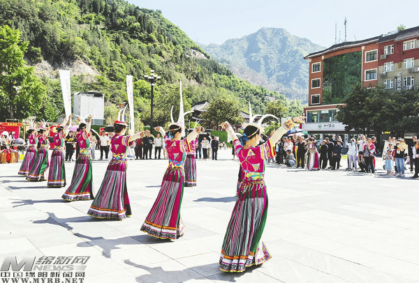 在文化集市里,平武本土?xí)?、文?chuàng)產(chǎn)品及非遺手作等特色產(chǎn)品琳瑯滿目,“報恩情韻”民俗文化表演中,白馬歌舞、羌族歌舞等極具特色的民俗節(jié)目讓游客流連忘返。夜幕降臨,西城門廣場的鍋莊舞更是將歡樂的氛圍推向高潮,游客與本地市民手拉手共舞,在歡快節(jié)奏中感受民族文化魅力。這種“文物保護(hù)+文化體驗+消費場景”的融合發(fā)展模式,正是平武推進(jìn)文化遺產(chǎn)保護(hù)和文博旅游發(fā)展的生動實踐。