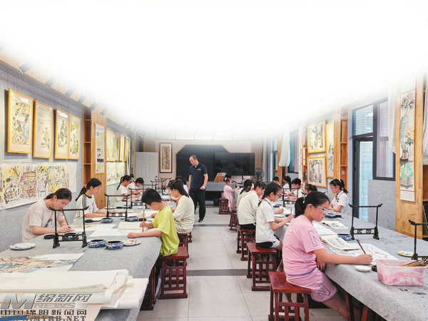 巖彩畫社團(tuán)的學(xué)生正在練習(xí)畫畫