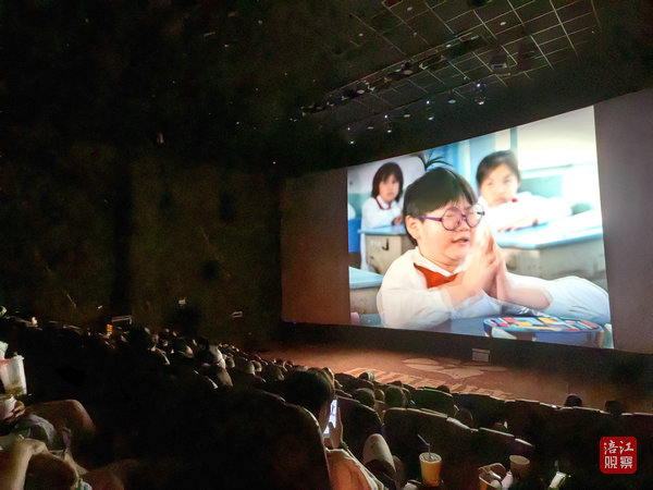 當天下午,在簡短的啟動儀式后,《別把作文當回事》在綿陽中環(huán)電影城高新區(qū)悅影匯店和國內200余家影院同步與觀眾見面。這部影片講的是一所普通小學校里,老師和學生在高壓環(huán)境中每天都在上演內卷、抵抗的故事,特別是作文課尤其讓人頭疼。頑皮的學渣馬小花以出其不意的方式打破了怪圈。老師學會了如何教作文,孩子們自然也就會寫作文了。電影放映過程中,熟悉的場景、現(xiàn)實中真實存在的喜劇色彩,讓現(xiàn)場笑聲不斷。